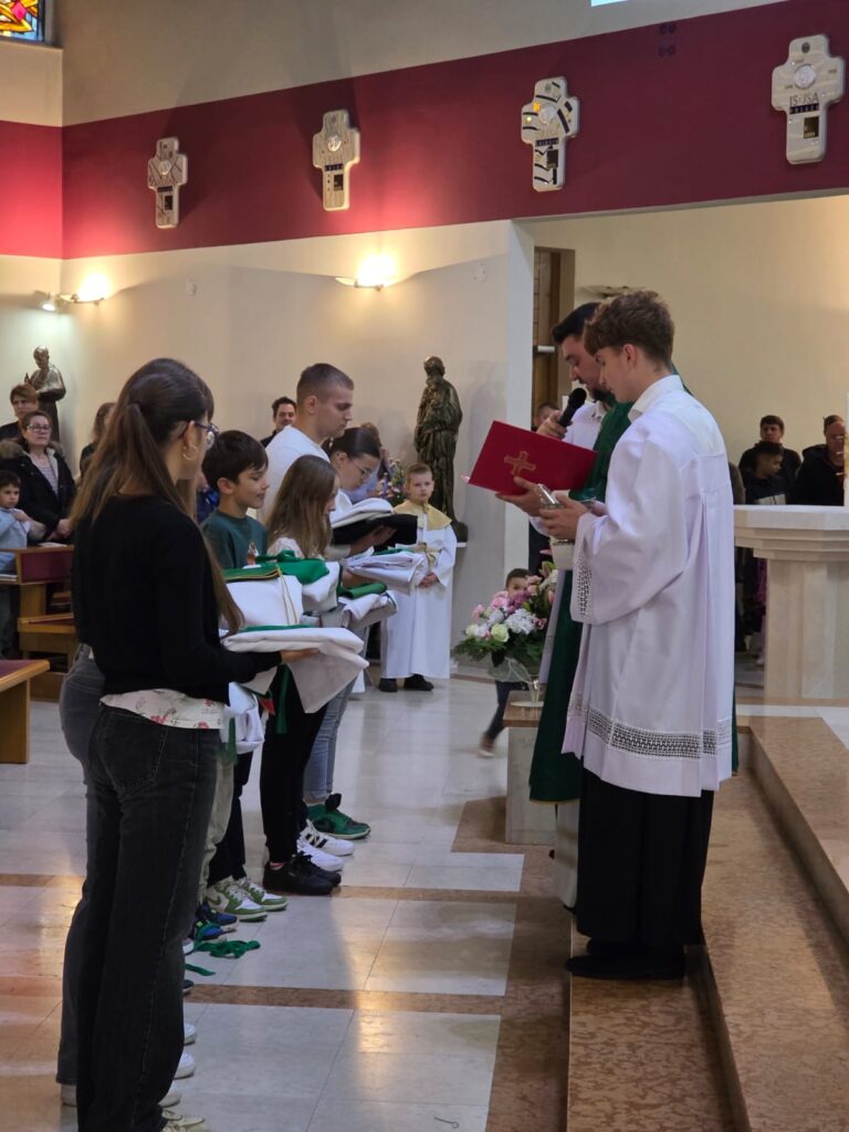 U nedjelju, 05. listopada, za vrijeme mise u 09:30 u službu je uvedeno 10 novih ministranta naše župe. Za vrijeme svečane svete mise ministrantima su blagoslovljene nove ministrantske haljine te su po prvi puta posluživali kod oltara.