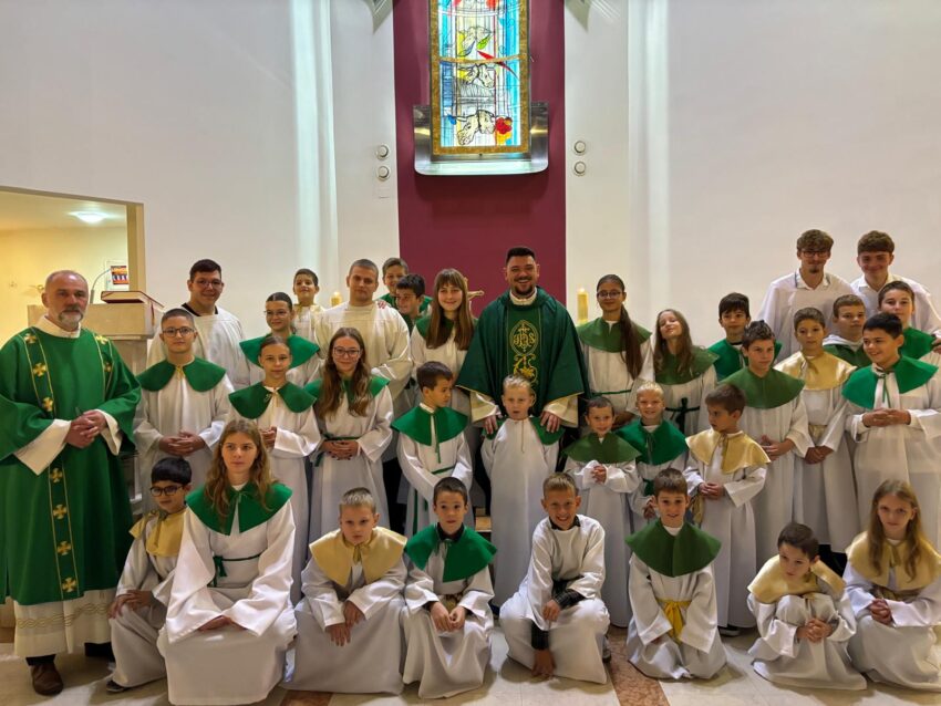 U nedjelju, 05. listopada, za vrijeme mise u 09:30 u službu je uvedeno 10 novih ministranta naše župe. Za vrijeme svečane svete mise ministrantima su blagoslovljene nove ministrantske haljine te su po prvi puta posluživali kod oltara. Obraćajući se novim, ali i starijim ministrantima, župnik Kristijan potaknuo ih je da ne budu samo lijep ukras…